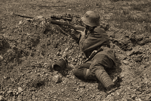 En fin, dilectos lectores, ya hemos visto de forma un tanto resumida pero bastante gráfica otro de los males que aquejaron a los sufridos combatientes de aquel espantoso conflicto. Añadir solo que la presión psicológica que ejercieron los francotiradores sobre las tropas en liza llegó al extremo de hacer uso de la artillería para acabar con ellos en caso de no poder localizar su posición. A cañonazos era más probable acabar con su vida o, al menos, obligarlo a largarse de su apostadero. Lo malo es que el fulano tuviera la suficiente sangre fría para aguantar el chaparrón de metralla y, tras cesar el bombardeo, retomar su escabechina y dejar a los enemigos con un palmo de narices.