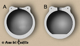 Por otro lado, los moldes se configuraban de forma longitudinal al proyectil y no como vimos en los de las balas, perpendiculares. Este sistema, que podemos ver en la ilustración de la izquierda, daba lugar a piezas asimétricas, con excrecencias y cuyas rebabas que, como recordaremos, debían ser eliminadas a golpes de cortafríos, producían bombas de mala calidad, que no se ajustaban bien al ánima de las piezas y, además, muchas unidades desechables debido a que durante la operación de desbarbado se rompían a consecuencia de los martillazos propinados en los cortafríos. En fin, un churro de bombas, así que se decidió replantear todo el proceso de elaboración de moldes para producir ejemplares bien acabados, lo que se traduciría en mejor precisión y menos problemas a la hora de efectuar la carga de los mismos.