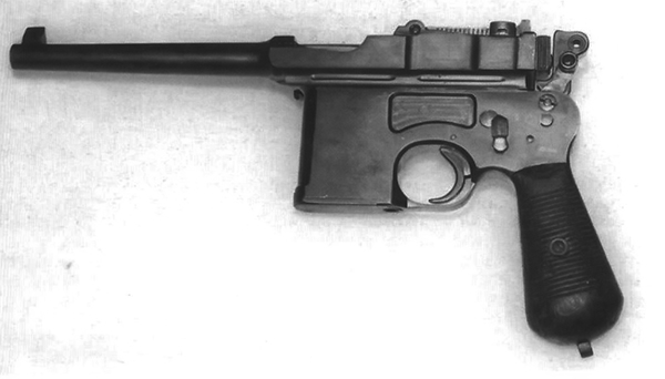 | Mauser C96 original. Obsérvese que el cañón y la corredera forman una sola pieza. Esto suponía un complejo proceso de mecanizado que repercutía en el precio del arma |